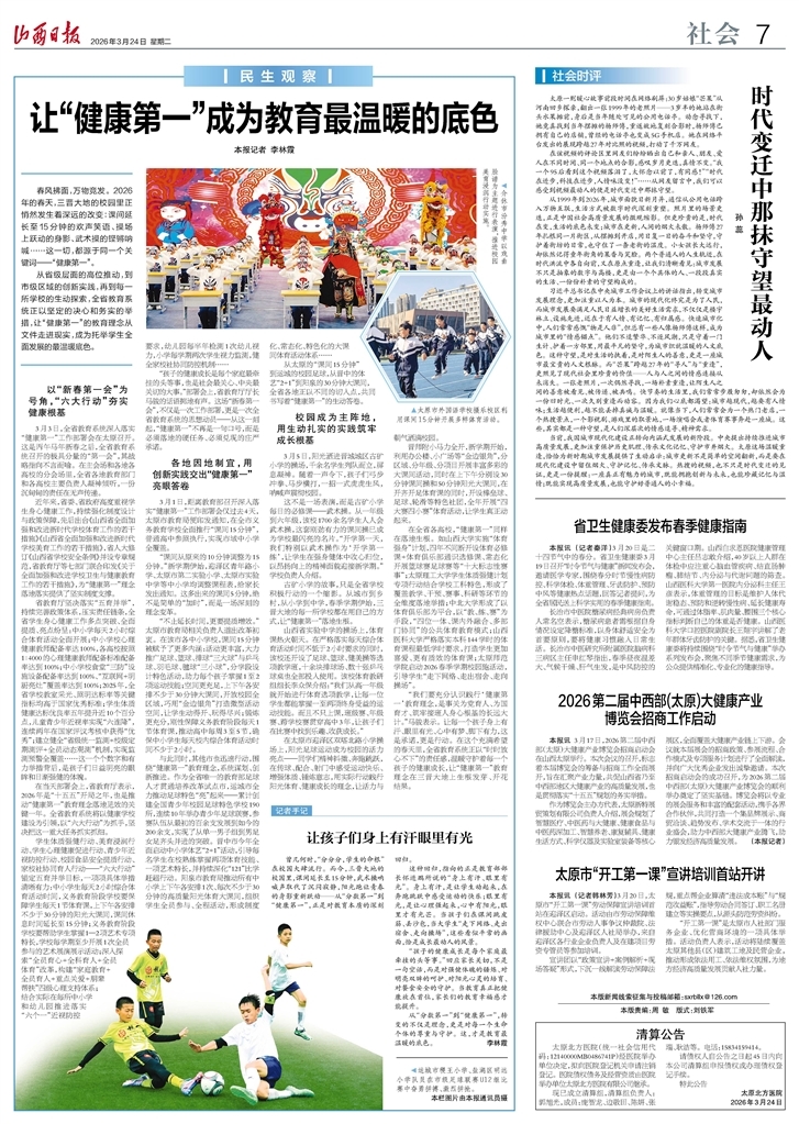 古矿小学的故事,只是全省学校积极行动的一个缩影。从城市到乡村,从小学到中学,春季学期伊始,三晋大地的每一所学校都在用自己的方式,让“健康第一”落地生根。