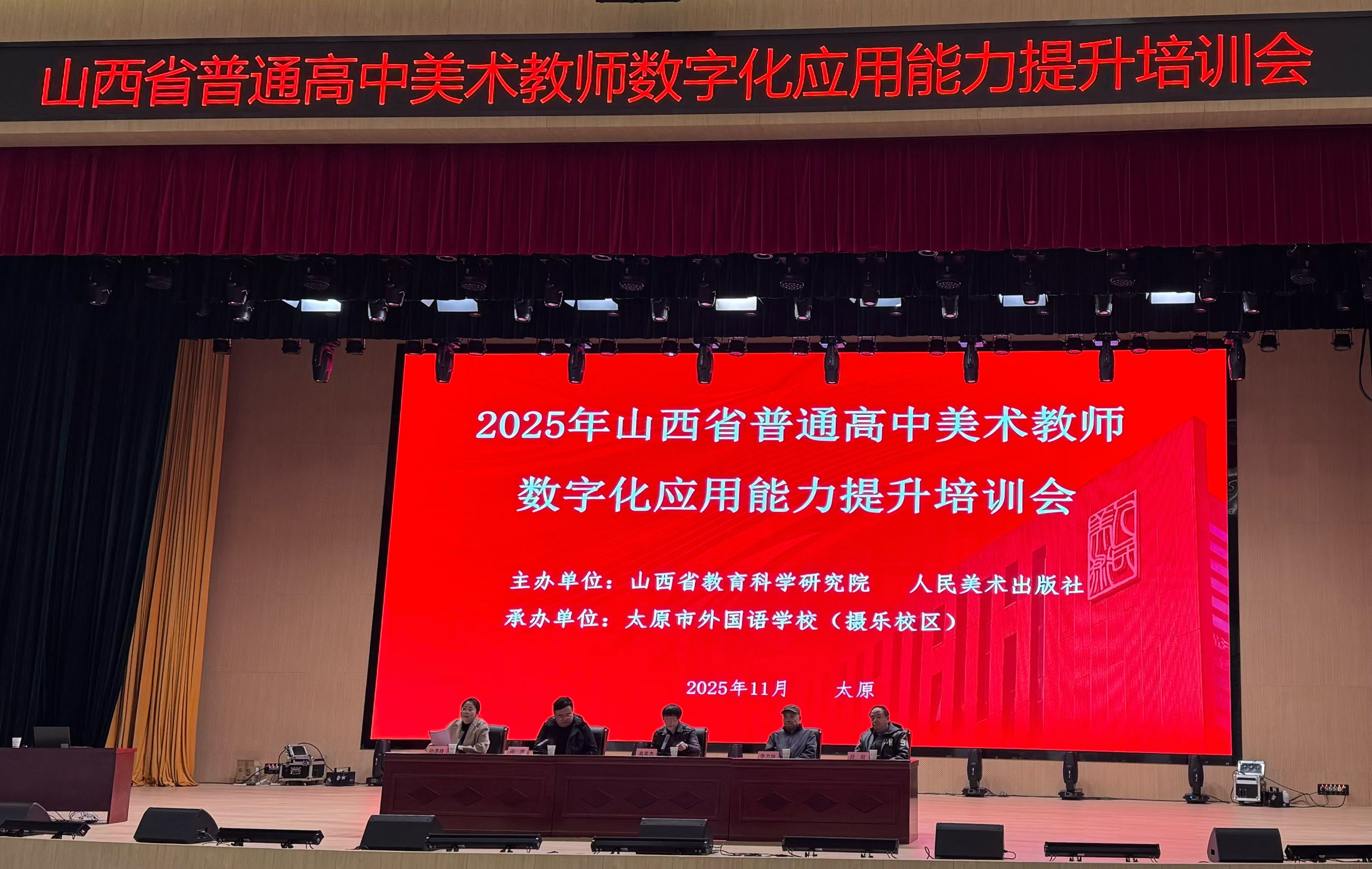 2025年11月13日至14日,由山西省教育科学研究院与人民美术出版社联合主办、太原市外国语学校(摄乐校区)承办的山西省普通高中美术教师数字化应用能力提升培训在太原成功举办。全省各市美术教研员及骨干美术教师齐聚,共探美育数字化转型路径。