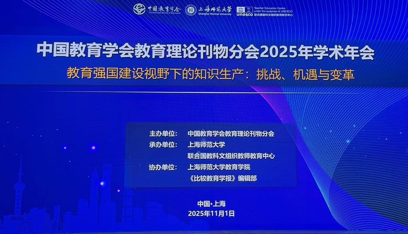 10月31日至11月1日,中国教育学会教育理论刊物分会2025年学术年会在上海举行,来自全国各地的近300名专家学者和期刊代表齐聚申城,围绕“教育强国建设视野下的知识生产:挑战、机遇与变革”这一核心主题,共探知识生产的创新路径、共商教育理论期刊的发展方向、共话教育学术的未来图景。我院院长、《教育理论与实践》主编范晓东教授带领团队出席会议,并就《教育理论与实践》在选题策划、主题宣传、队伍建设及助力青年学者成长等方面的实践探索进行了分享交流,为破解我国教育学自主知识生产的质量瓶颈、提升学术创新水平提供了新思路,也为未来教育理论刊物发展注入了新活力,推动教育理论与实践更好地融合。