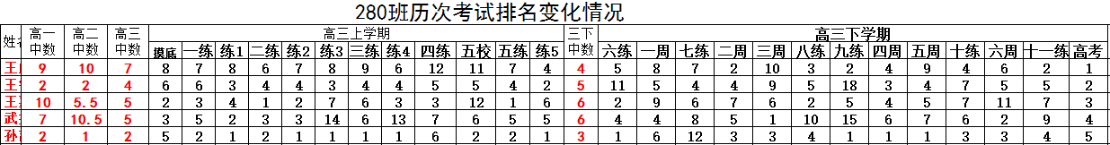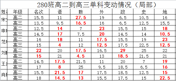 当然这需要付出很多的时间和精力,特别是单科排名的变化情况,做起来需要极大的耐心和细心。但做完整个数据后,的确能发现很多单靠感觉无法得到的信息,而这些信息连学生自己看到时,也常常会陷入深深的思考。