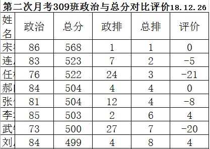 第一,单科成绩不稳定。有的同学单科成绩上下浮动很大,或者平时测试和正式考试判若两人。这种情形下,用单科强度就无法准确表现该生该科的学习状态。如,某生的总分排名稳定在“9”左右,政治课三次考试的名次分别为3、18、30,那政治的平均排名(即“政治强度”)就是17,用“17”是不是可以准确反映他的政治强度呢?用“-12”(9-17)是不是可以说明他的政治是弱科,而且很弱呢?显然还需要深入研究和观察。